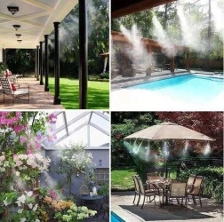Perfekt til terrasser, pergolaer, altaner, omkring poolen og i drivhuse. Tågen fugter luften og gavner planterne.