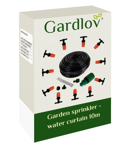 Vandtågeskærmen skaber en fin tåge, der absorberer varme fra omgivelserne og giver behagelig afkøling på varme dage. Med 11 kvalitetsdyser på 6 mm i diameter er dækningen jævn og skånsom for både planter og mennesker. Installationen er hurtig – tilslut blot en standard 1/2" vandforsyning og fastgør slangen med de medfølgende kabelstrips.