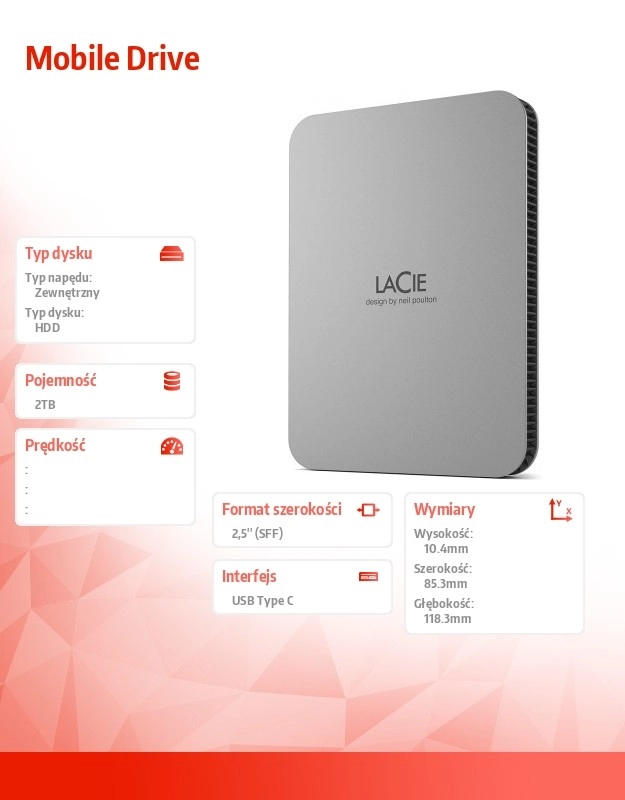 Nyd premium design og stor kapacitet med LaCie Mobile Drive. Udviklet i samarbejde med designeren Neil Poulton, denne disk
