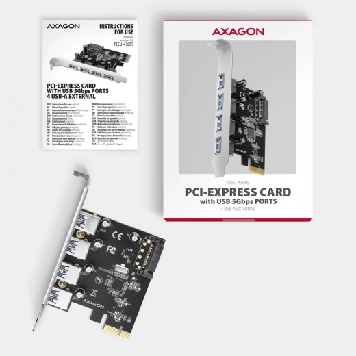 Udvid din desktop med fire hurtige USB-A 5 Gb/s-porte med AXAGON-controlleren. Den tilbyder stabile overførsler, RENESAS-chipset for pålidelig kompatibilitet, UASP-understøttelse og strøm via 15-pin SATA for problemfri drift af flere enheder samtidigt.