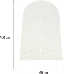 Den øverste åbning til bøjlen gør det let at hænge i skabet og at transportere. Takket være de kompakte mål er overtrækket et godt valg til opbevaring i hjemmet og rejser, hvor det holder tøjet rent og friskt.