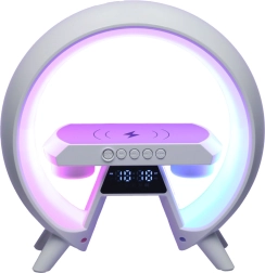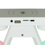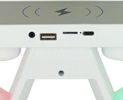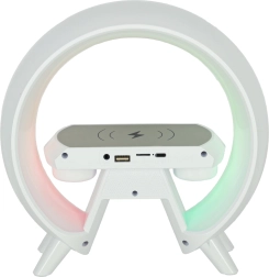 Denne lampe sparer plads, hvilket er ideelt til små rum eller natborde. Teknologien til trådløs opladning er tilgængelig, når den er tilsluttet strøm.
