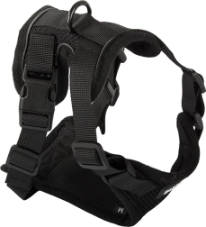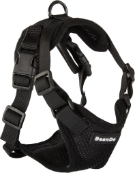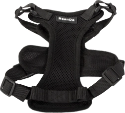 Denne lette og holdbare sele er designet til at fordele trykket jævnt og give hunden komfort – også på længere gåture. Det åndbare netstof lader huden ånde, og den bløde polstring forebygger skrammer. Hurtigspænder og en D-ring i metal sikrer sikker fastgørelse af linen og nem håndtering.
