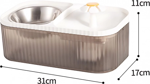 Praktisk dobbelt skål med fontæne giver dit kæledyr kontinuerlig adgang til frisk, filtreret vand og foder ét sted. Den stille fontæne med kulfilter fremmer et øget væskeindtag, den rustfri stålkål er hygiejnisk og nem at rengøre, og takket være USB-strømforsyning kan enheden bruges både hjemme og på farten.