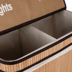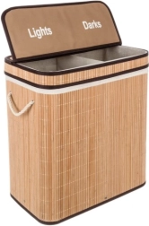 Denne dobbeltkammer vasketøjskurv er lavet af holdbart bambusmateriale, der ikke kun er slidstærkt, men også miljøvenligt. Den unikke konstruktion sikrer, at kurven forbliver stabil, selv når den er fuld. Med en kapacitet på op til 100 liter er den ideel til større mængder vasketøj. Det elegante og stilede design passer nemt ind i ethvert interiør.