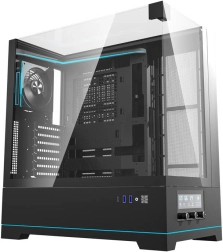 Computerkabinet Darkflash DY450 PRO skiller sig ud med sit moderne sorte design og glaspaneler, der giver et smukt udsyn til dine komponenter. Dette kabinet har gennemførte kølefunktioner, inklusive understøttelse af op til syv ventilatorer og mulighed for installation af vandkøling. Derudover er det udstyret med ARGB-belysning, der tilbyder 23 forskellige tilstande for fuld personalisering.