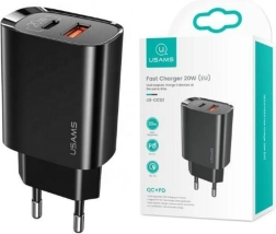 USAMS T35 er en alsidig oplader med støtte for Power Delivery 3.0 og Quick Charge 3.0, som sikrer stabil effekt på op til 20 W. Det kompakte kabinet i robust ABS+PC og den universelle indgang på 100–240 V gør den til en fremragende rejsepartner i stikkontakter over hele verden.