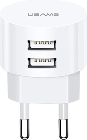 USAMS T20 er en praktisk og pålidelig vægoplader med to USB-porte, som lader dig oplade to enheder på én gang. Takket være intelligent strømtilpasning leverer den stabil og hurtig opladning op til 2,1 A og beskytter samtidig batteriet mod farlige spændingssvingninger.