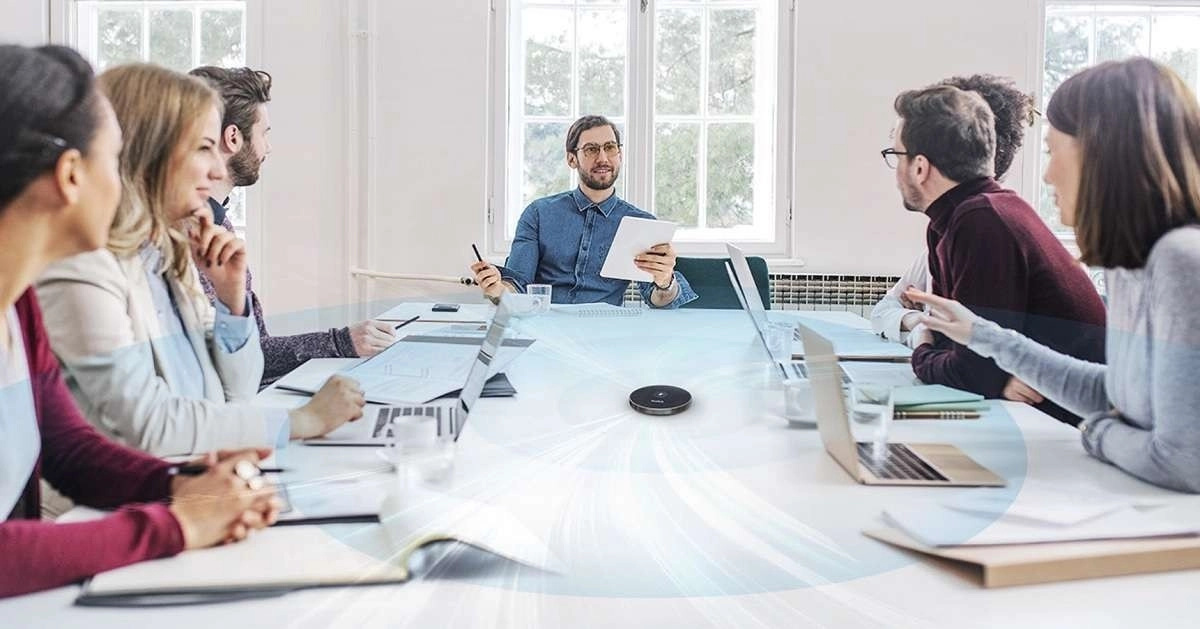 Mikrofonen opfanger enhver lyd i en radius på op til 6 meter – ideel til mellemstore og større mødelokaler.