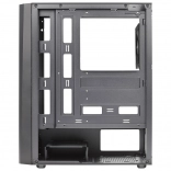 Mid Tower-chassis med en unik frontpanel med RGB og integrerede RGB-lystilstande. Ventilationsåbninger i frontpanelet muliggør øget luftstrøm og cirkulation. Den er udstyret med et fuldflade akryl-sidepanel, der viser indersiden af din build.