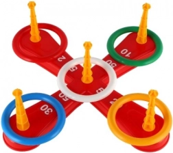 Spillet inkluderer en korsbase og farverige ringe til sjov kast.