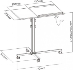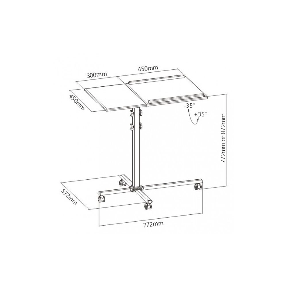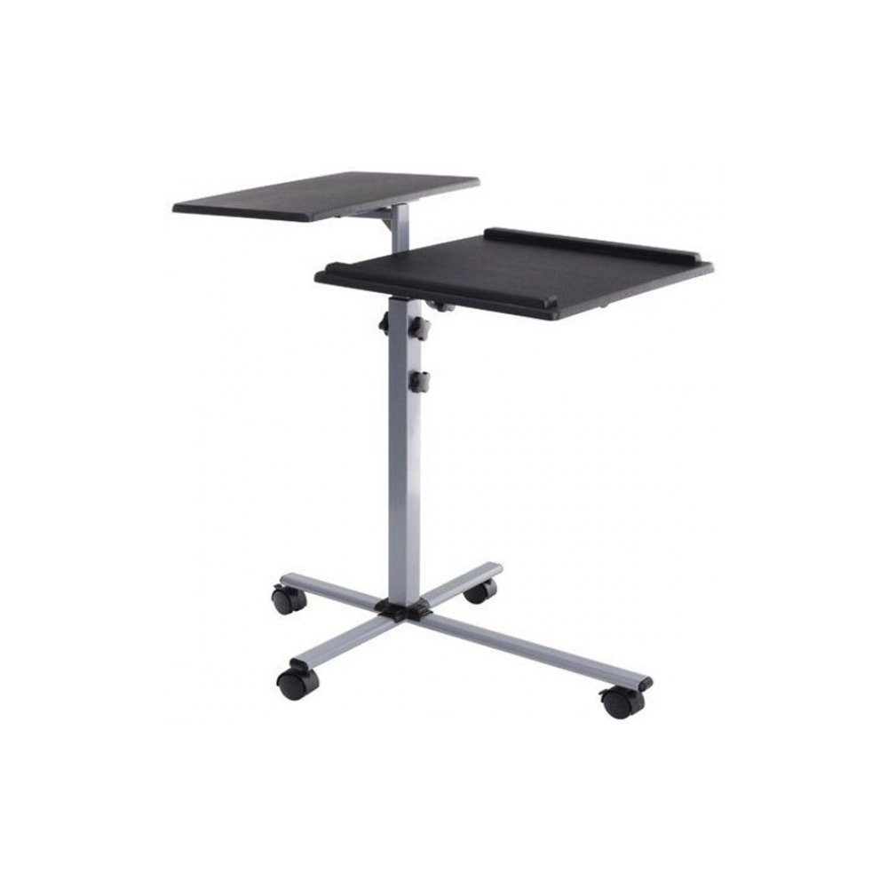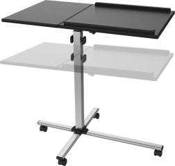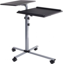 Dette mobile bord er en universel hjælp til præsentationer i firmaer eller ved kurser. Dens delte flade giver rigeligt med plads til både projektor og bærbar computer, og en højdejusterbar flade gør det muligt at tilpasse det til brugerens behov. Desuden har det sikkerhedskanter på en af hylderne, hvilket forhindrer at det opbevarede udstyr glider af.