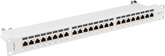 Patchpanel med 24 RJ-45-porte i kategori 7, ideelt til organisering og terminering af kabler i rackskabe. Hurtig og nem installation takket være IDC/LSA-stik.