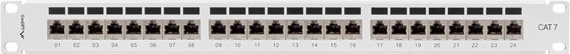 Tilbyder 24 afskærmede RJ-45-porte i kategori 7.