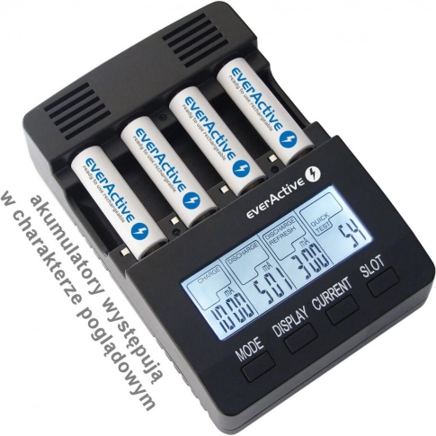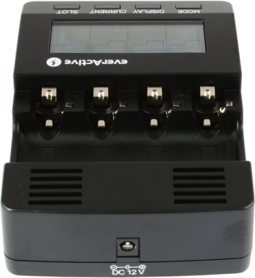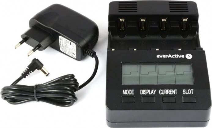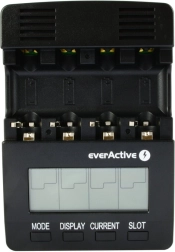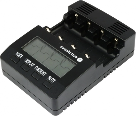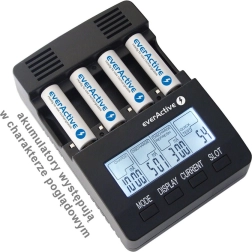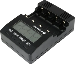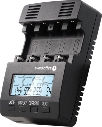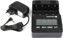 EVERACTIVE NC-3000 er en smart oplader med avanceret diagnostik til Ni-MH/Ni-Cd-akkumulatorer. Hver af de fire slots styres uafhængigt, så du kan oplade forskellige typer og kapaciteter samtidigt. Det store baggrundsbelyste LCD-display viser spænding, strøm, tid og kapacitet, hvilket gør det nemt at holde styr på hele processen.