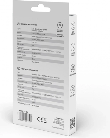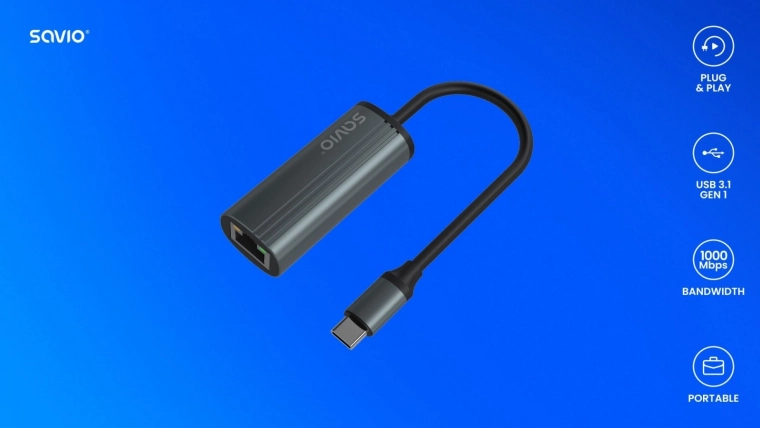 SAVIO USB‑C til RJ‑45 adapteren er det ideelle valg til bærbare og pc’er uden ethernetport. Den leverer en stabil gigabitforbindelse til flydende streaming, hurtige downloads og problemfrit online‑arbejde. Tilslut blot via USB‑C, og den virker med det samme – uden driverinstallation.