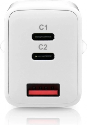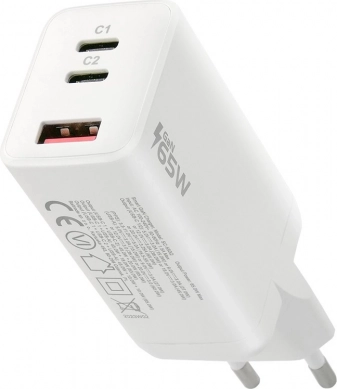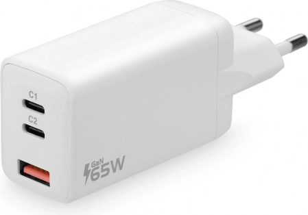 Hvid hurtigoplader USB/USB-C QC4+ 65W med GaN-teknologi