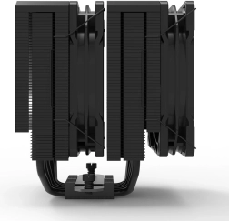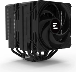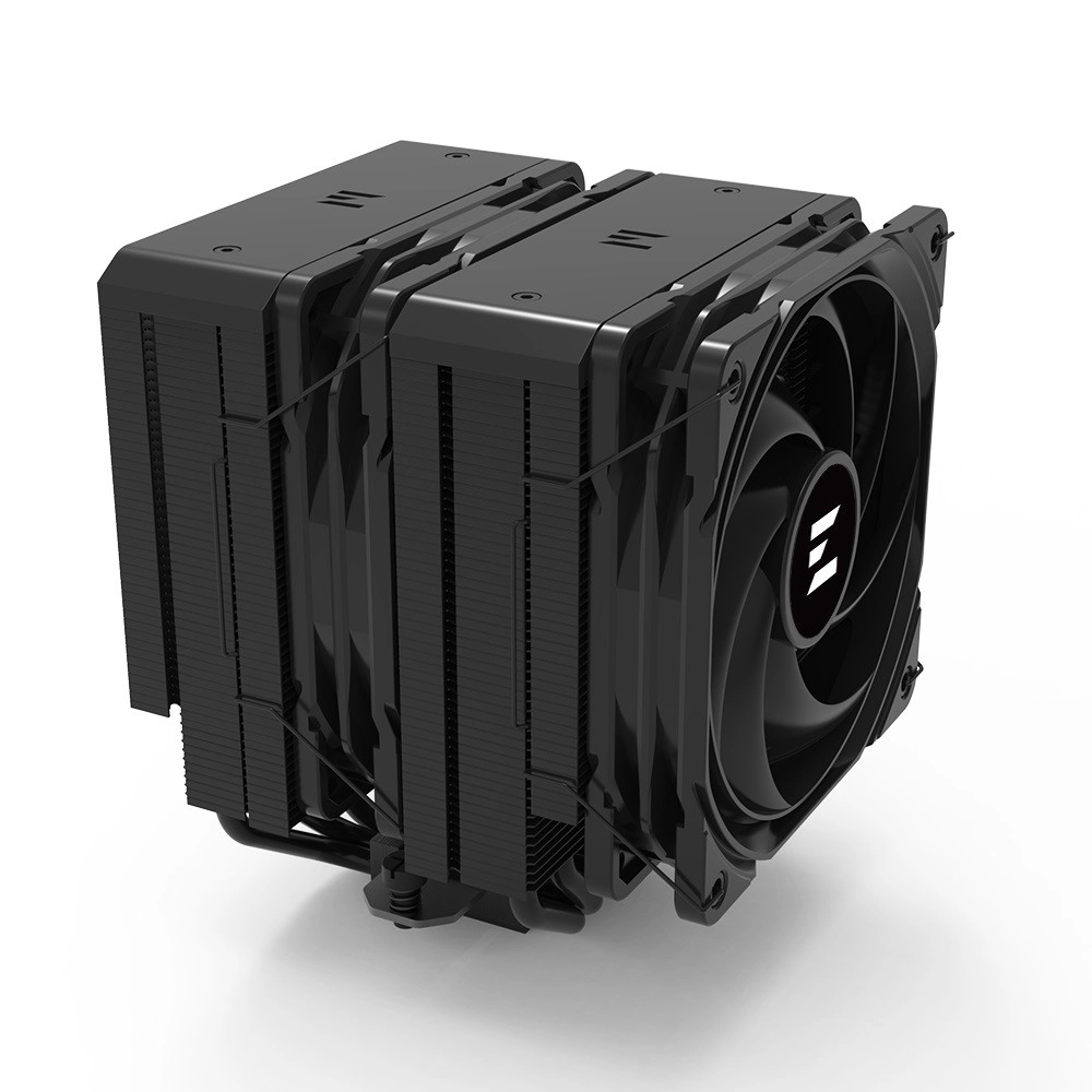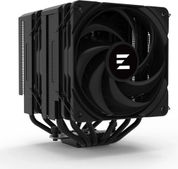 ZALMAN CNPS14X Duo i elegant sort leverer førsteklasses varmeafledning i et kompakt kabinet på 126 × 135 × 159 mm. De to 120 mm blæsere med hastighedsstyring sikrer optimal luftgennemstrømning og balancerer ydelse og lavt støjniveau efter den aktuelle belastning.