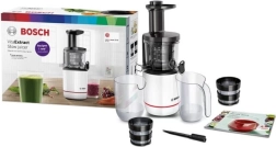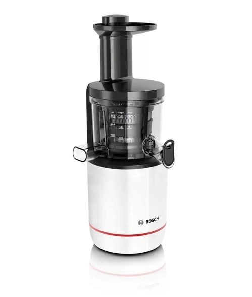 BOSCH MESM500W er en pålidelig slowjuicer designet til sunde og velsmagende juicer hver dag. Skånsom presning ved lav hastighed bevarer vitaminer, mineraler og den naturlige farve i frugt og grønt. Med det lukkelige udløb DripStop holder du arbejdsfladen ren uden dråber.