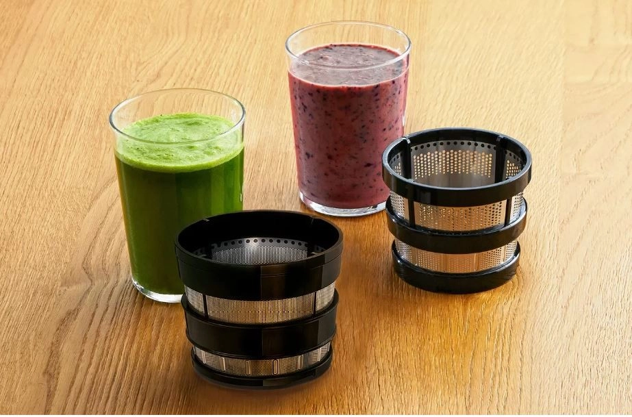 - Filtre/sier, beholdere til saft og pulp, opskriftsbog