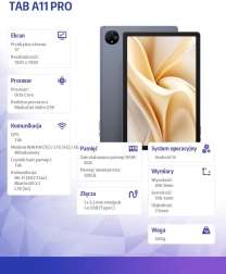 Tabletten Ulefone Tab A11 Pro 4G er det ideelle valg for alle, der søger ydeevne og pålidelighed i én pakke. Takket være den 11" FullHD+ IPS-skærm med 90 Hz opdateringsfrekvens leverer den et skarpt og flydende billede, perfekt til film eller spil.