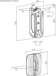 Når cyklen er hængt op, kan du dreje holderen til venstre eller højre (−85° til +65°) og justere cyklen tættere på væggen.