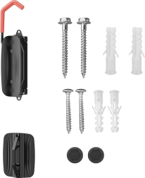 Installationen er hurtig og nem: i pakken finder du rawlplugs og skruer. Holderen er kompakt med gennemtænkte monteringshuller og skridsikker tekstur. Passer til mountainbikes, trekking- og bycykler med en dækbredde på op til 90 mm.