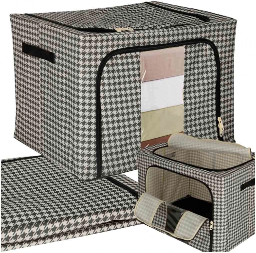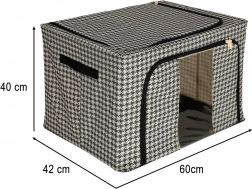 Maksimér pladsen i skabet med en rummelig organizer, ideel til opbevaring af sengetøj, håndklæder, tæpper og sæsonbetonet tøj. Takket være den indvendige konstruktion bevarer boksen formen selv ved mindre fyldning, og det gennemsigtige vindue lader dig straks se, hvad der er indeni.