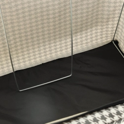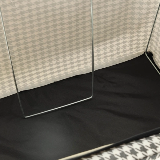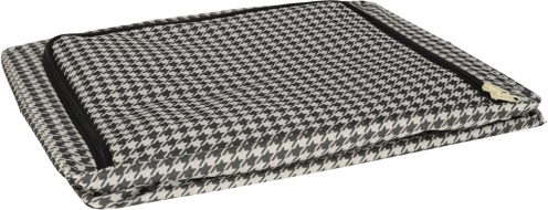 Praktiske lynlåse og to adgangspunkter gør det let at lægge i og tage ud uden rod. Det slidstærke tekstilmateriale i polyester er let at vedligeholde, og det elegante sort‑hvide pepitomønster passer ind i enhver indretning.