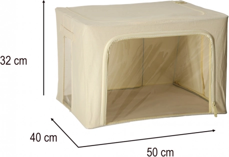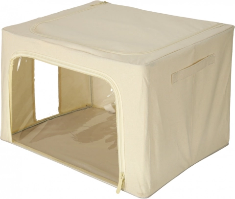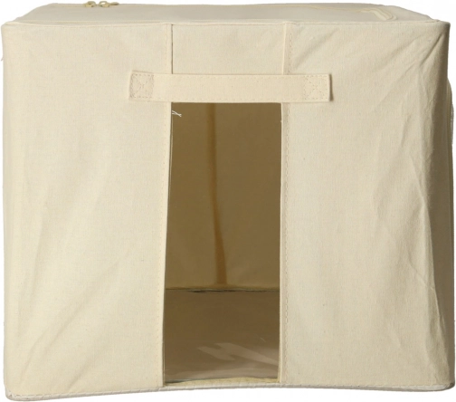 Denne cremefarvede tekstilorganizer er ideel til dundyner, puder, tæpper, håndklæder og sæsonbetonet tøj. Med den forreste lynlåsåbning kan du nemt tage ting ud selv fra de nederste hylder uden at flytte boksen. Den gennemsigtige front lader dig straks se, hvad der er indeni.