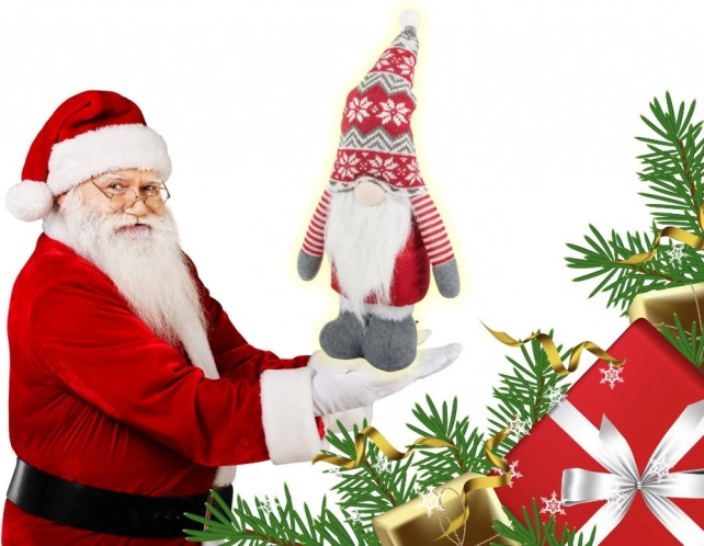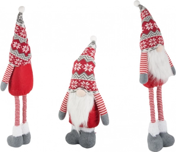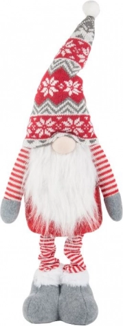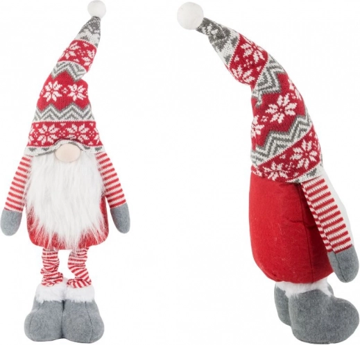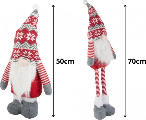 Stilfuld skandinavisk nisse i røde toner med lang strikket hue, blødt hvidt skæg og stribede ærmer er den ideelle dekoration til vintertiden. Justerbar højde 50–70 cm lader dig tilpasse figuren til det sted, hvor den kommer bedst til sin ret – fra vindueskarm til pejsehylde.