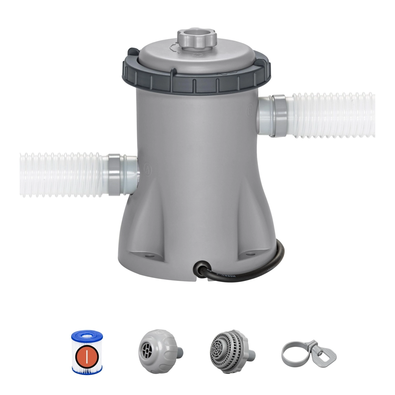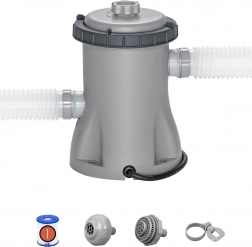 Flowclear patronfilter med vandgennemstrømning (pumpekapacitet): 1.249 l/t. Vandgennemstrømning via det integrerede pools ystem (systemgennemstrømning): 1.060 l/t. Kan tilsluttes alle pools med et volumen på 1.100–8.300 l. Slangetilslutning: 3,2 cm. Filterpatron: 58093 (I). 110–120 V~, 0,2 A. 220–240 V~, 16 W. Indeholder: 1 x patronfilter