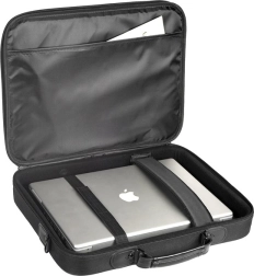 Praktisk taske til bærbare op til 17″, der kombinerer solidt håndværk, pålidelig beskyttelse og fremragende pris-ydelsesforhold. Den tilbyder forstærkede sider, en fastholdelsesrem til sikker fastgørelse af enheden, en tovejslynlås for nem adgang samt frontlomme med velcrolukning og en indre rumopdeler til småting.