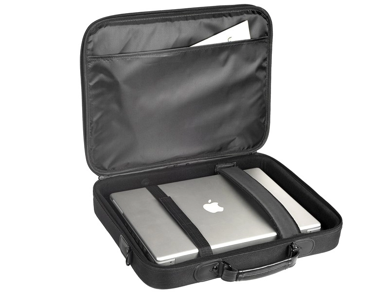Den pålidelige 17″ laptop-taske er designet til daglig pendling og kontorbrug. Forstærkede sider i kombination med en indvendig sikkerhedsrem holder den bærbare på plads og beskytter den mod stød. Takket være den tovejs lynlås har du altid nem og hurtig adgang til enheden.