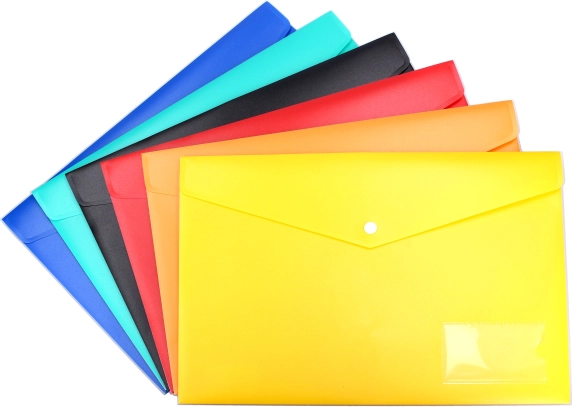 Praktisk plastmappe med trykknap i målene 36 × 25,5 cm, ideel til sikker opbevaring og transport af dokumenter, tegninger og småting. Takket være navneskiltet er det nemt at identificere indholdet og holde orden. Blød, vaskbar plast, mat overflade og pålidelig lukning med trykknap beskytter indholdet mod snavs og tab.