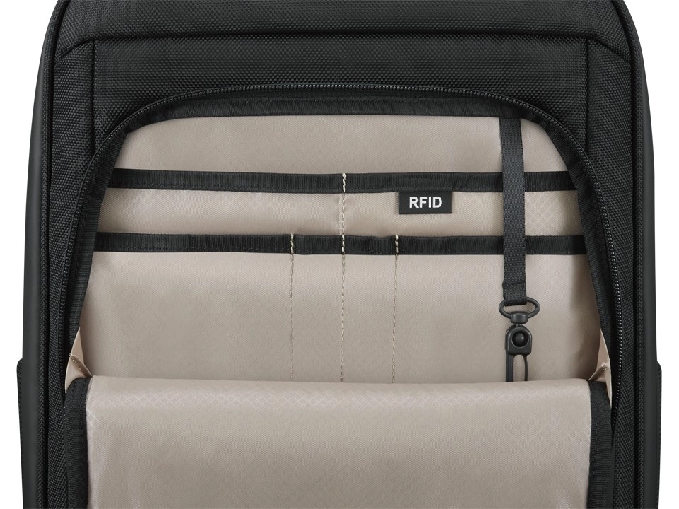 Den velpolstrede computerlomme rummer bærbare med skærmstørrelse op til 16", og den separate polstrede indsatslomme har størrelse til bærbare op til 14"
