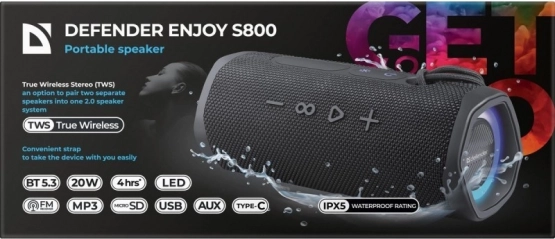 Den kompakte Bluetooth-højttaler DEFENDER Enjoy S800 med effekt på 20 W leverer kraftig lyd, trådløs tilslutning og iøjnefaldende LED-belysning. Understøtter USB-flash, microSD, har FM-radio, og med TrueWireless kan du nemt parre to højttalere for en stereo oplevelse.