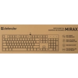 Fuldstørrelses mekanisk tastatur DEFENDER MIRAX med klikbare OUTEMU Blue-switche giver markant taktil feedback, præcis kontrol og justerbar RGB-baggrundsbelysning. Det tilbyder Anti-Ghosting på alle taster, Win-tastlås under spil og robust konstruktion mod fugt. I pakken medfølger keycap- og switch-aftrækkere for nem vedligeholdelse.