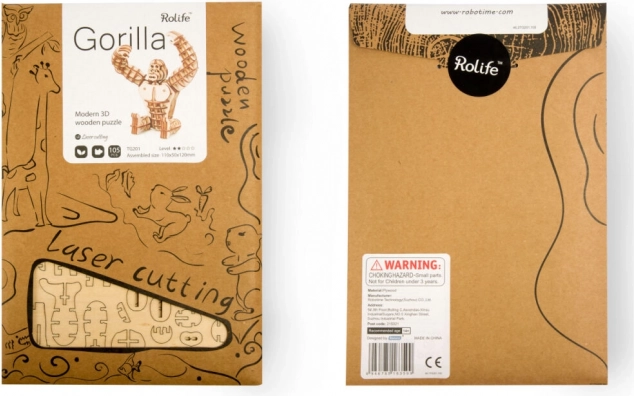 Oplev glæden ved at skabe med det træbaserede 3D-puslespil gorilla fra RoboTime. Modellen er designet til nem samling, også for begyndere, og bliver efter færdiggørelse en stilfuld dekoration til børneværelse, kontor eller stue. Det naturlige materiale og de præcise udskæringer understreger det realistiske udseende og den høje kvalitet.