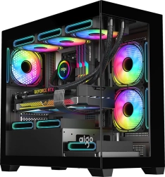 To gennemsigtige paneler af hærdet glas fremhæver æstetikken i de interne komponenter, og det minimalistiske design sikrer et moderne udseende.