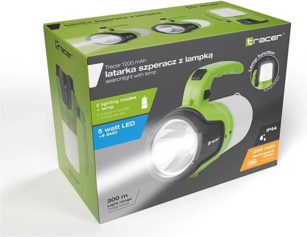 Tracer lommelygte er designet til at opfylde forskellige behov. Med otte SMD LED-dioder giver den en kraftig lysstrøm, synlig på op til 300 meters afstand. Det indbyggede batteri med en kapacitet på 1200 mAh sikrer lang driftstid.