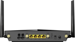 Denne router tilbyder fire gigabit Ethernet-porte og to slots til Nano SIM-kort, hvilket sikrer maksimal tilslutningsfleksibilitet.