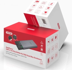 Det dobbelte, højtydende chipset med UASP muliggør effektiv kommandohåndtering og op til markant højere hastigheder end almindelig USB. Understøttelse af TRIM hjælper med at opretholde konsistent ydeevne og længere levetid for dine NVMe‑drev. Aluminiumschassiset med integreret blæser og medfølgende termiske pads sikrer stabile temperaturer selv ved lange overførsler. Secure‑Lock-mekanismen beskytter mod utilsigtet åbning og muliggør hurtig værktøjsfri udskiftning af drev.