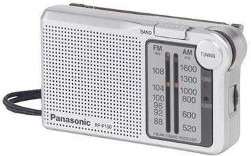 Radioen RF-P150 er en bærbar AM/FM-radio med et stort indstillingshjul og en usædvanligt lang batterilevetid.