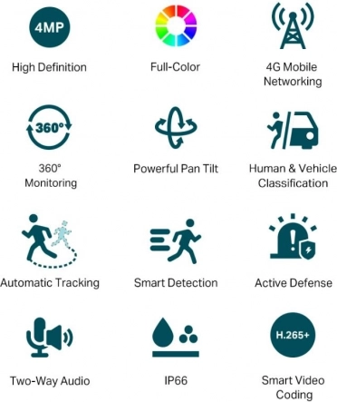 Pålidelig 4G-kamera VIGI C540 med 360° dækning, IP66 og intelligent detektion til effektiv overvågning.