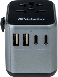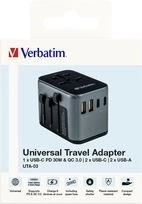 Rejseadapteren VERBATIM UTA-03 er en smart løsning til strømforsyning i mere end 180 lande. Den tilbyder 6-i-1 opladning via en AC-stikdåse, 3× USB‑C og 2× USB‑A, understøtter Power Delivery 30 W og Quick Charge 3.0 for lynhurtig opladning. Kompakt, sikker og ideel til bærbare, telefoner og tilbehør.