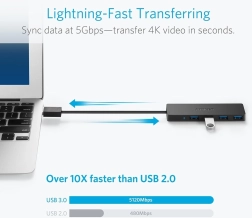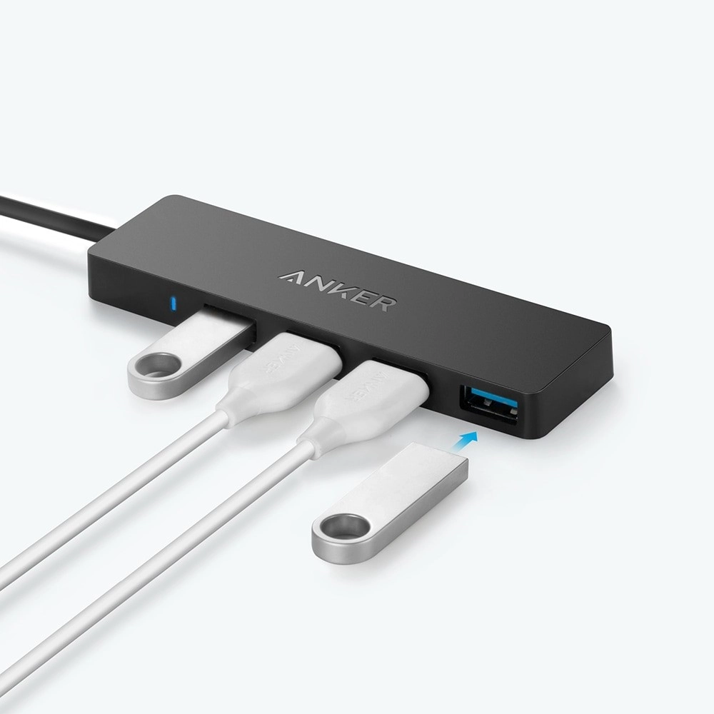 Ultra Slank 4-port USB 3.0 Hub Anker er den perfekte løsning for dem, der ønsker at øge deres computers tilslutningsmuligheder. Denne elegante og kompakte hub giver dig mulighed for at tilslutte op til fire USB-enheder samtidigt, hvilket er ideelt for brugere med begrænsede porte på deres bærbare computere.