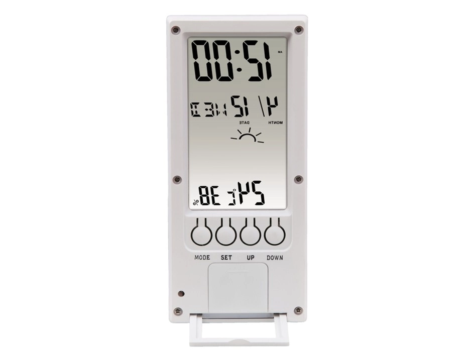 Derudover får du vigtige informationer om luftfugtigheden i rummet, hvilket hjælper dig med at bevare optimal komfort i hjemmemiljøet. Denne enhed viser dig også temperatur, dato, ugedag og tid, hvilket gør det til et multifunktionelt supplement til dit hjem.