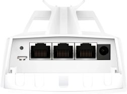 Til krævende udendørs drift har det IP65-kapsling og 6 kV overspændings-/lyn-beskyttelse. Tre gigabit-porte gør det muligt at tilslutte kameraer eller andre netværkselementer direkte. Takket være integrationen i Omada SDN får du centraliseret, fjernadministration og overvågning. Strømforsyning via passiv PoE (adapter medfølger) gør fleksibel placering uden nærmeste stikkontakt nemmere.