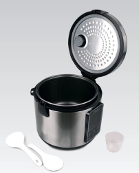 Multicooker Maestro er et ideelt valg til familiemadlavning. Takket være kapaciteten på 5 liter kan du tilberede supper, gryderetter, ris, grød og desserter til flere personer. Effekten på 700 W sikrer hurtig og effektiv drift, mens rustfrit stål og robust plast giver apparatet et moderne udseende og lang levetid.